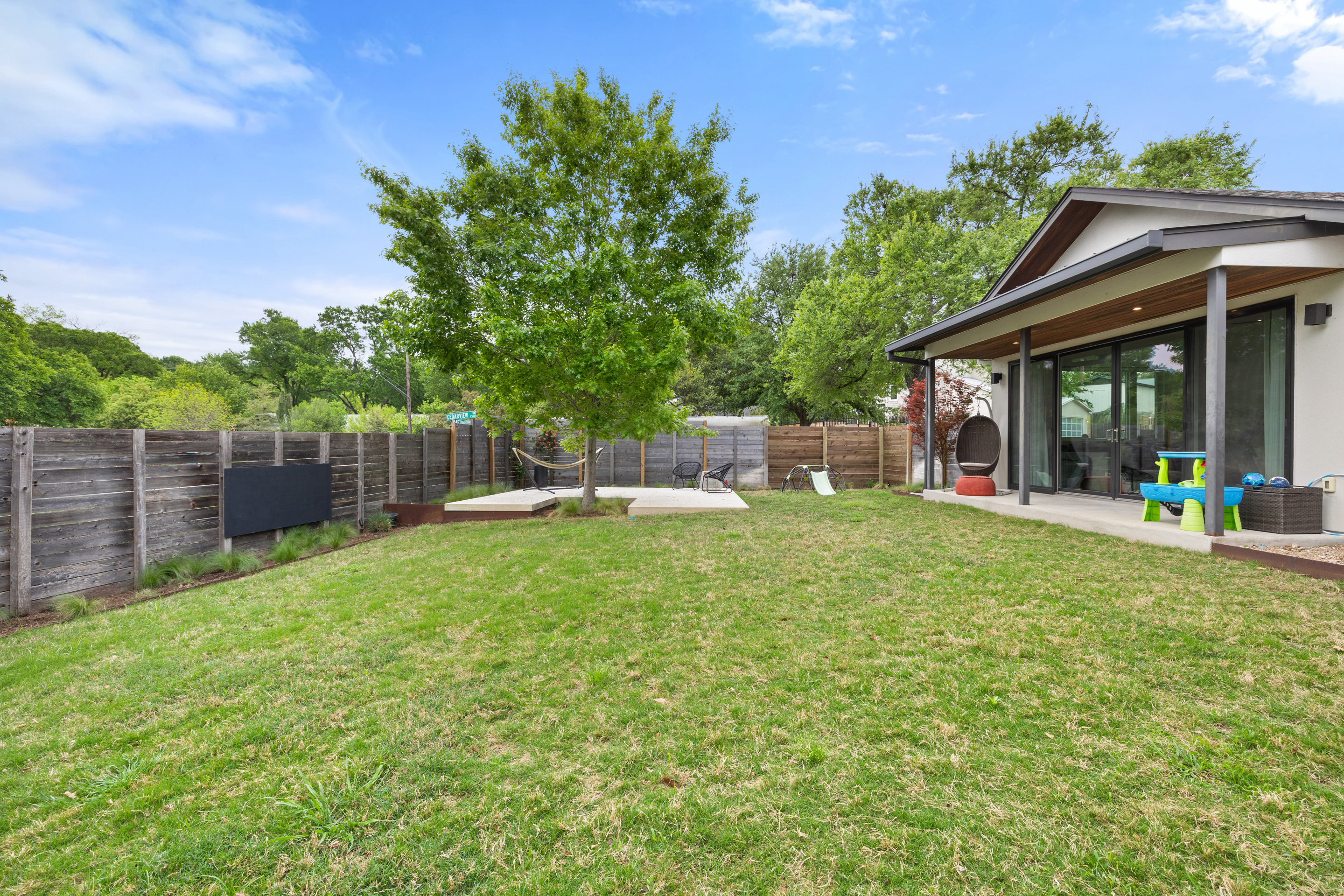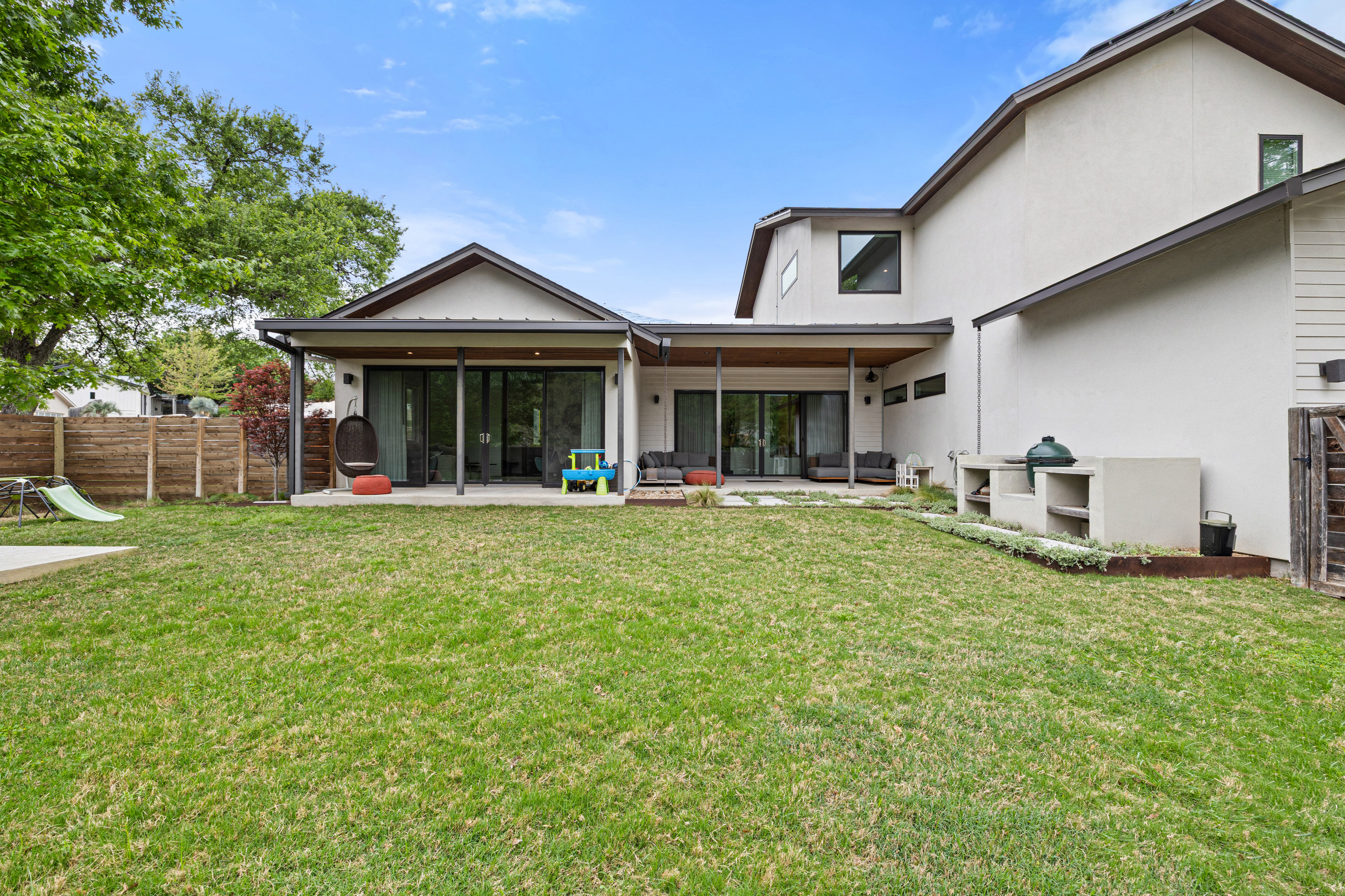 Welcome to 2500 Cedarview Drive, a meticulously designed 4-bedroom, 3-bath home that combines soft modern architecture with exceptional energy-efficient upgrades. Nestled in the coveted Barton Hills neighborhood of Central Austin, this beautifully designed property offers the perfect blend of urban convenience, natural beauty, and laid-back charm. Built in 2016 by Strut Design+Build and designed by the late, renowned architect Cass Cheesar, this home boasts 3,147 square feet of sophisticated living space across two levels. Its open concept floor plan and abundance of natural light create a bright, airy atmosphere ideal for family living and entertaining. Situated on a corner lot with a side-entry garage, this home provides both privacy and curb appeal.